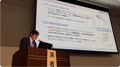 | 発表演題 | 「IoTアプリケーション『Koji Awareness™』における遠隔介入のためのアプリUX設計・セキュリティ対策・利用分析」 |